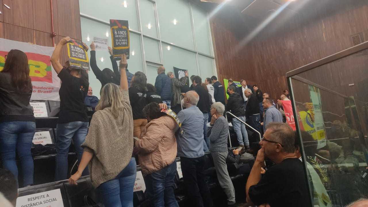 A Associação de Bombeiros do Estado do RS – ABERGS, a partir do Coordenador de Secretariado Adjunto, 2° Sargento Nelvio Rodrigues, acompanhou durante toda a tarde da terça-feira (03) a sessão plenária que encerrou com a aprovação do reajuste vergonhoso de 6% aos servidores do Estado do Rio Grande do Sul. Outro projeto polêmico, que aborda a questão do Regime de Recuperação Fiscal do Estado, não foi votado por falta de quórum, encerrando a sessão no início da noite.