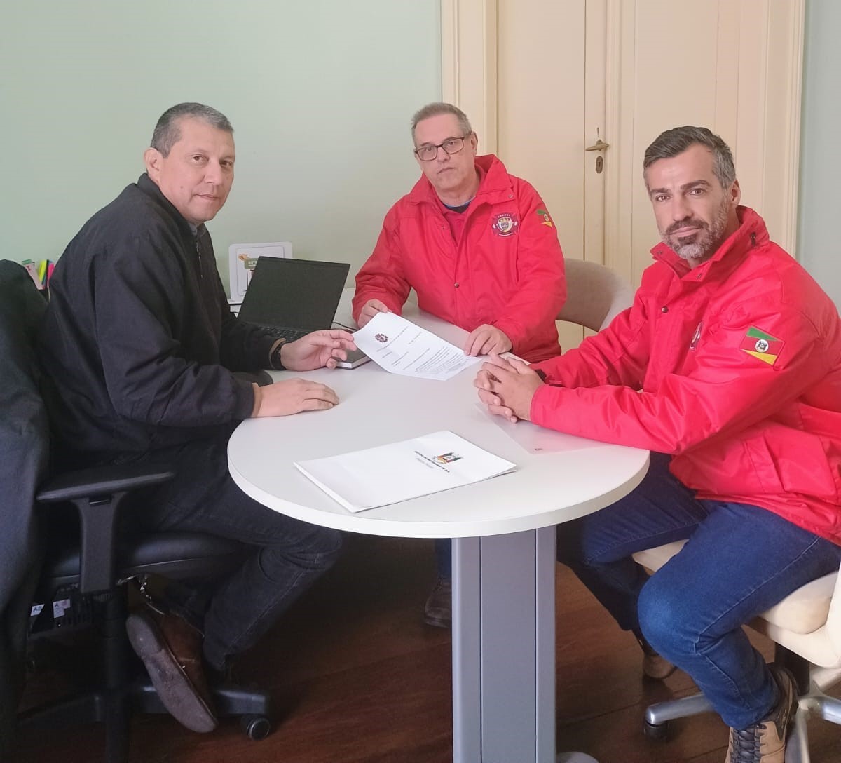 Coordenadores da Associação de Bombeiros do Estado do RS – ABERGS, Tenente-Coronel José Henrique Ostaszewski e 1° Sargento Jeferson França, estiveram na manhã desta terça-feira (04) em reunião com a deputada estadual Delegada Nadine, para apresentar a proposta da criação de um Grupo de Trabalho (GT) para estudar, planejar e coordenar as ações necessárias para a aplicação plena da Lei Orgânica Nacional dos Bombeiros Militares, Lei n° 14.751/2023.