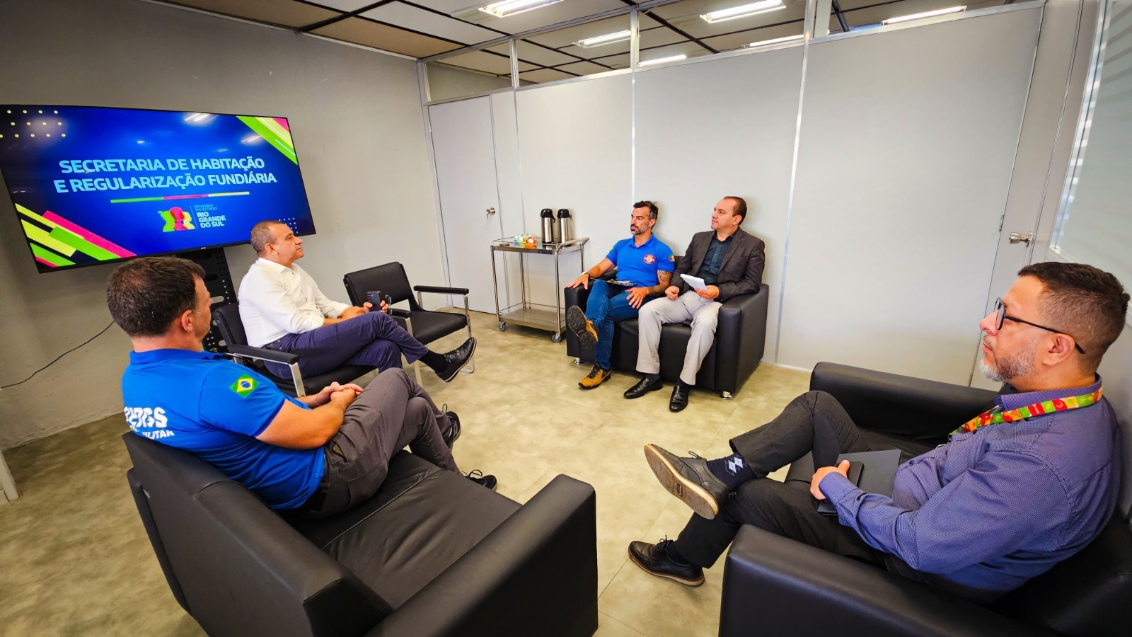 Nesta quarta-feira, 27, os Coordenadores da Associação de Bombeiros do Estado do RS - ABERGS, Jeferson França e Mateus Bordignon, foram recebidos pelo atual Secretário de Estado de Habitação e Regularização Fundiária, Carlos Gomes, para tratar de pautas estratégicas para o futuro do Corpo de Bombeiros Militar do RS - CBMRS.