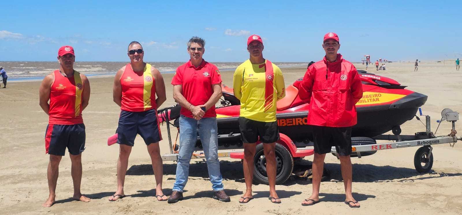 Além do Coronel Everton pela ABERGS, estiveram presentes representantes do Corpo de Bombeiros Militar do Rio Grande do Sul, como o Sargento Vilela, o secretário Gouveia da ASASUL – Associação de Salvamento Aquático do Litoral Sul, e o vereador Glauber Nunes.
