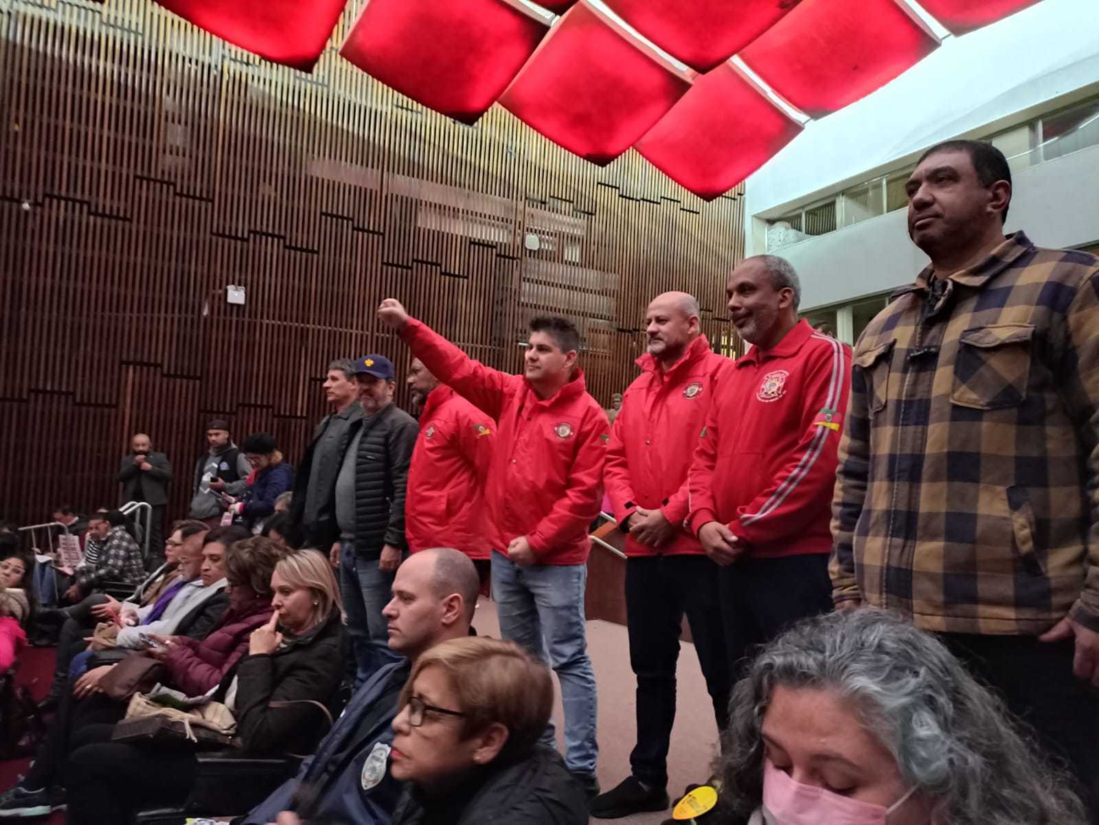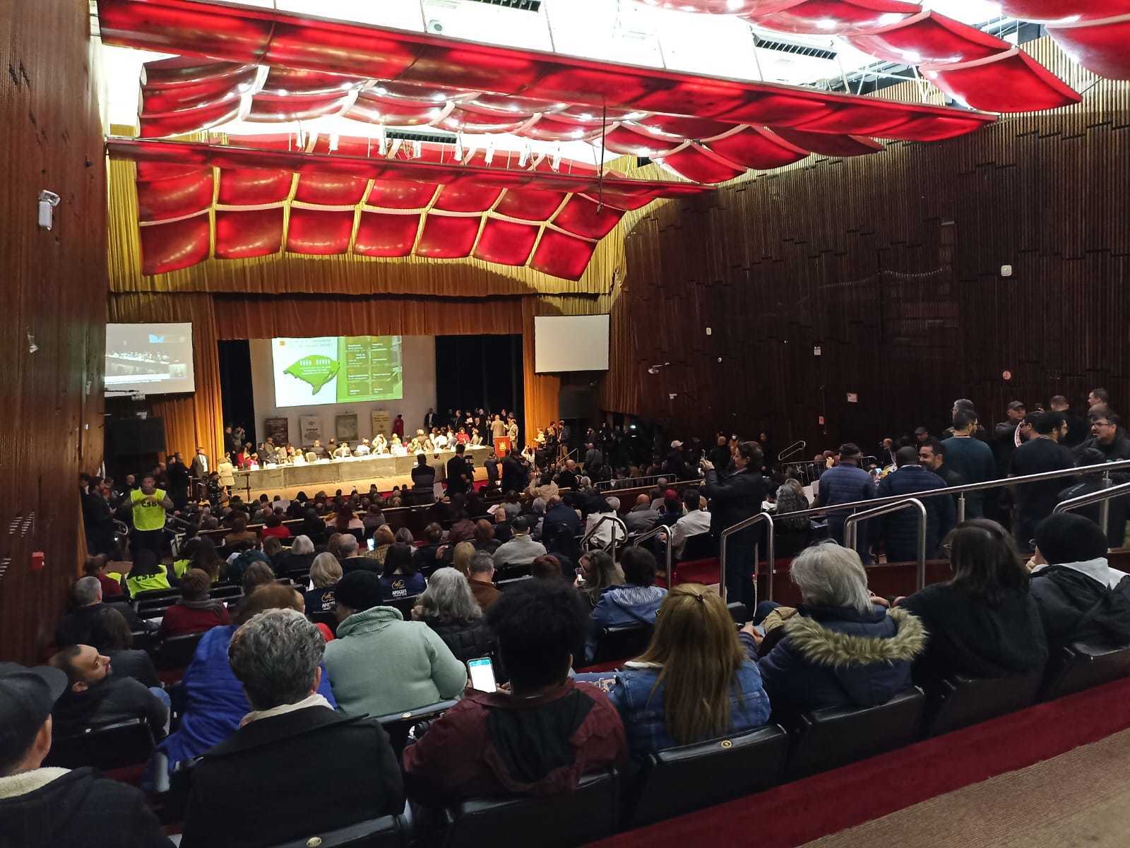 Coordenadores da Associação de Bombeiros do Estado do RS - ABERGS, participaram na manhã desta quarta-feira (14) de audiência pública que tratou sobre o IPE Saúde, o projeto - PLC 259/23 - apresentado pelo Governo do Estado, e a revisão geral dos salários dos servidores. A audiência aconteceu no Teatro Dante Barone da Assembleia Legislativa.