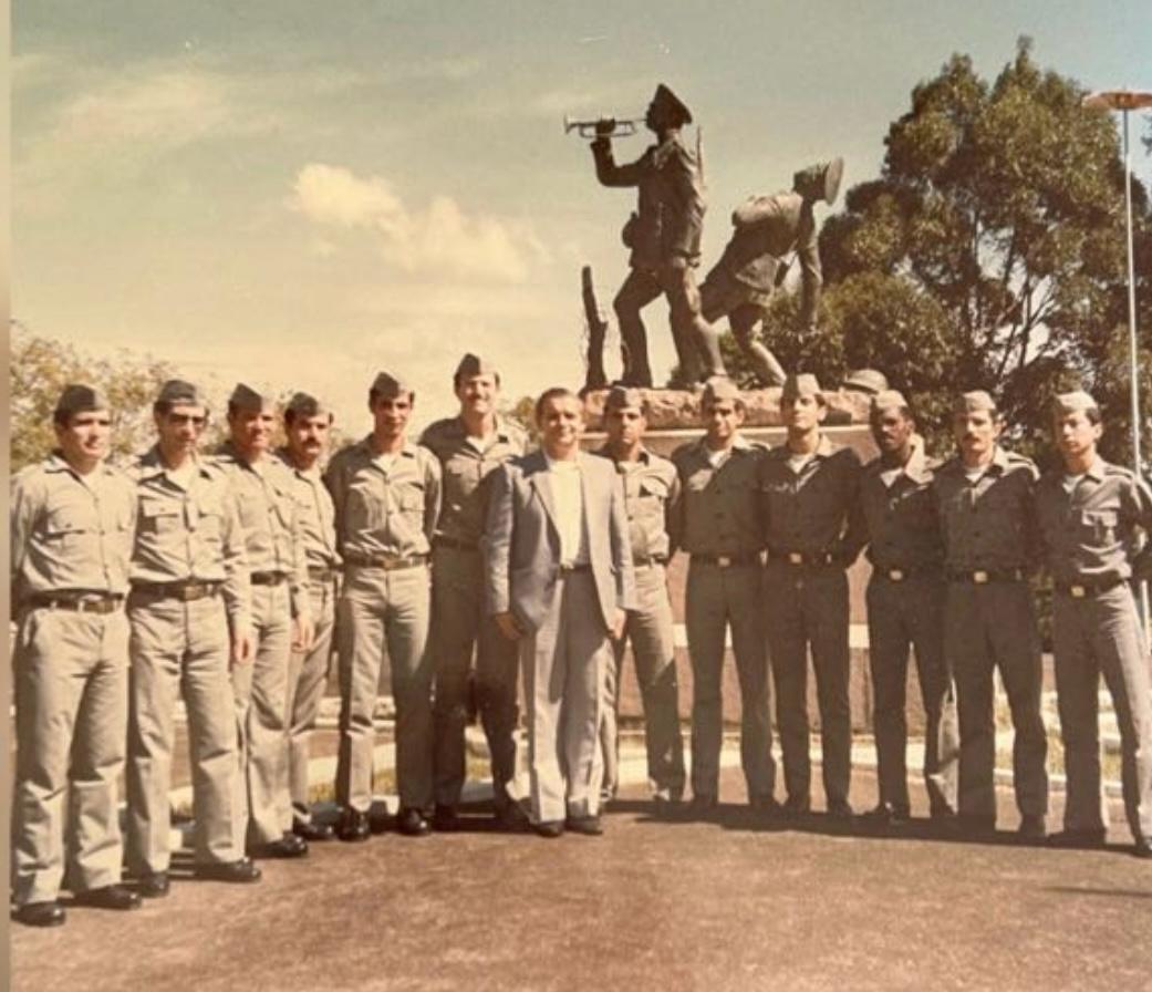 Participaram do encontro os veteranos, da esquerda para a direita, o Coronel Guido, Tenente Coronel Fuchs, Coronel Prates, Coronel Forlin, Coronel Altair, Coronel Osório, Coronel Medeiros, Tenente Coronel Adriano e Coronel Bulling.