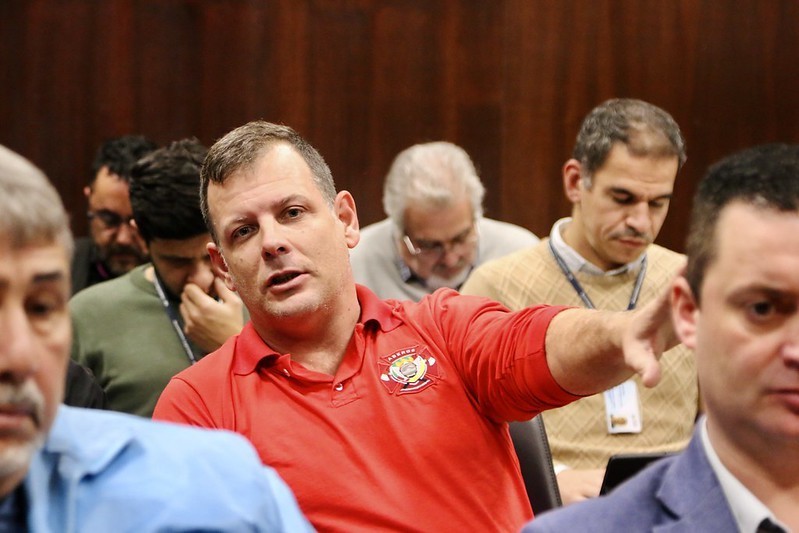 O Coordenador de Finanças Adjunto da Associação de Bombeiros do Estado do RS – ABERGS, 1º Tenente Mateus Bordignon Schoenell, participou na tarde desta quarta-feira (17), de reunião na bancada do PT, onde os deputados são contrários a proposta de reajuste salarial apresentada pelo governo e a forma como o processo está sendo conduzido.