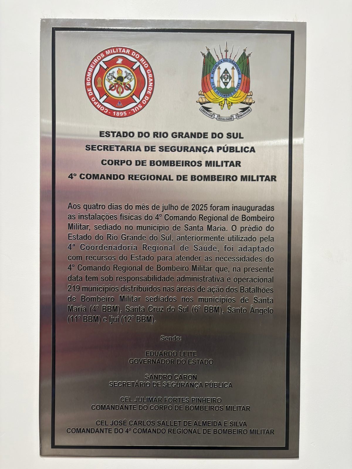 Na manhã desta sexta-feira (4 de julho), dentro da Semana de Prevenção de Incêndio 2025, foi inaugurada a nova sede 4° Comando Regional de Bombeiro Militar (4° CRBM) em Santa Maria. Prestigiou a solenidade o Coordenador de Secretariado da ABERGS, Ten Cel RR Daniel da Silva Adriano.