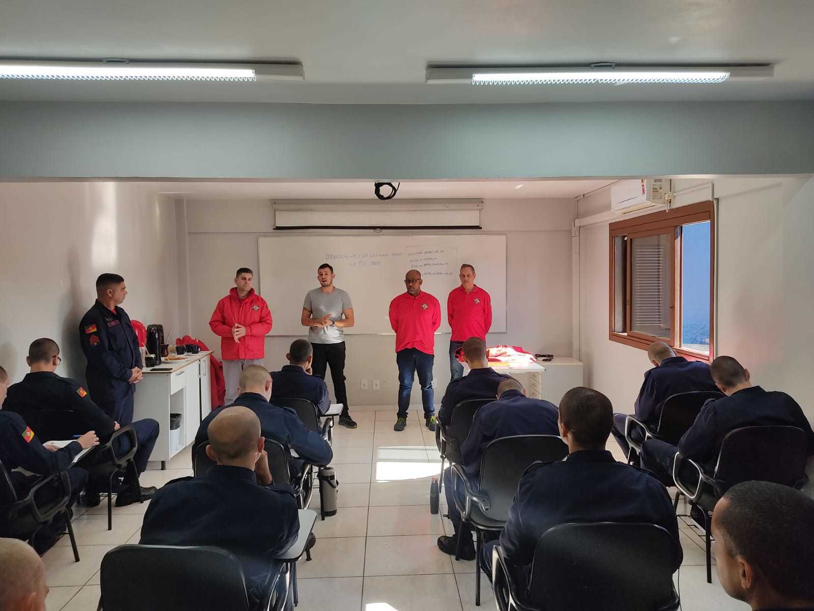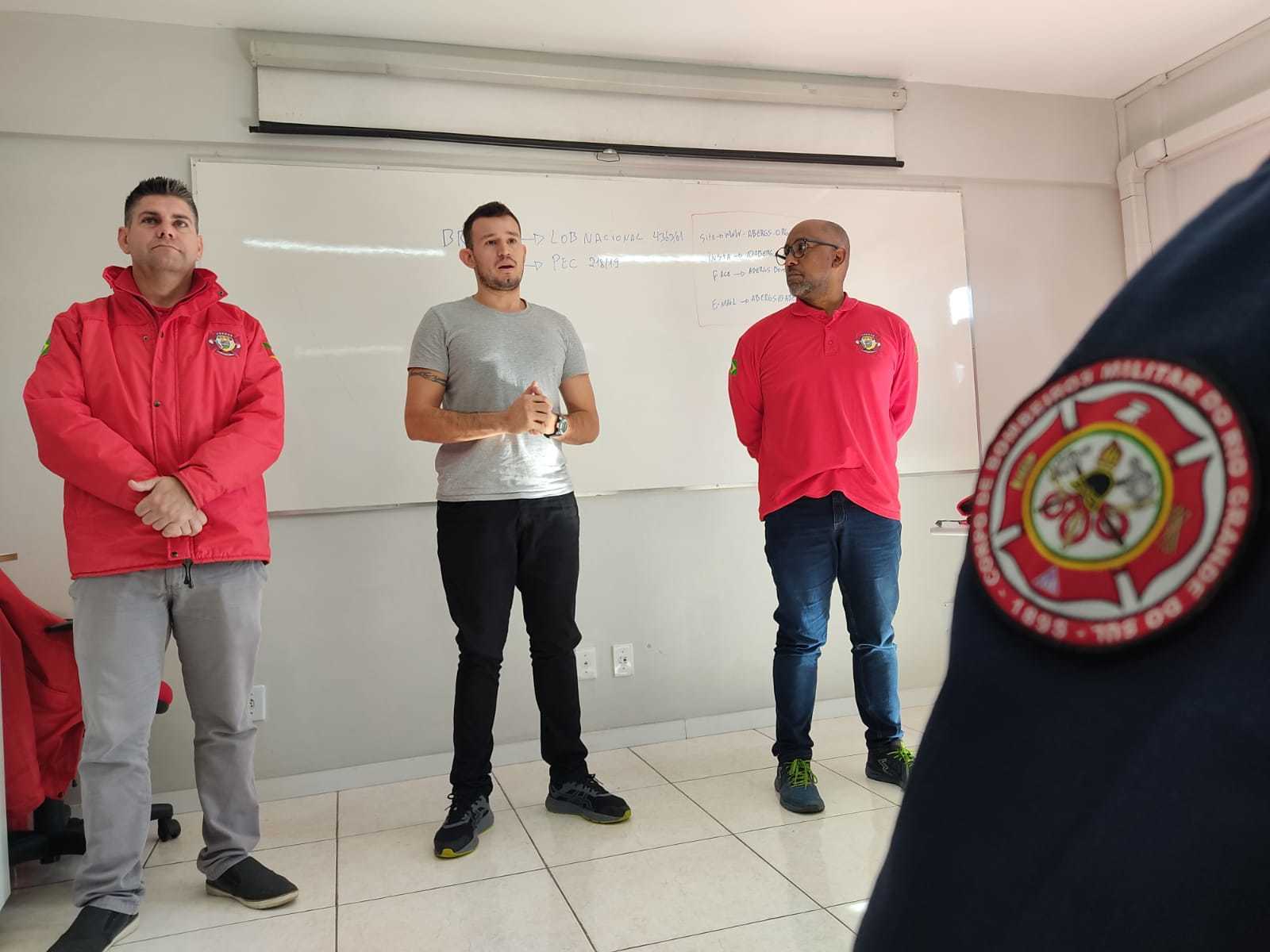 Acompanharam o encontro, o 1° Sargento Jorge Alex da Silva Rodrigues, Disciplina do CBFBM turma 4; e o Soldado Johnny Pires Gody, da turma de 2019, que atualmente está servindo no Corpo de Bombeiros Militar de Farroupilha, é associado da ABERGS e se encontrava de férias. Johnny se formou no mesmo centro de treinamento e teve a oportunidade de também falar um pouco da sua vivência como aluno, soldado e associado da ABERGS.