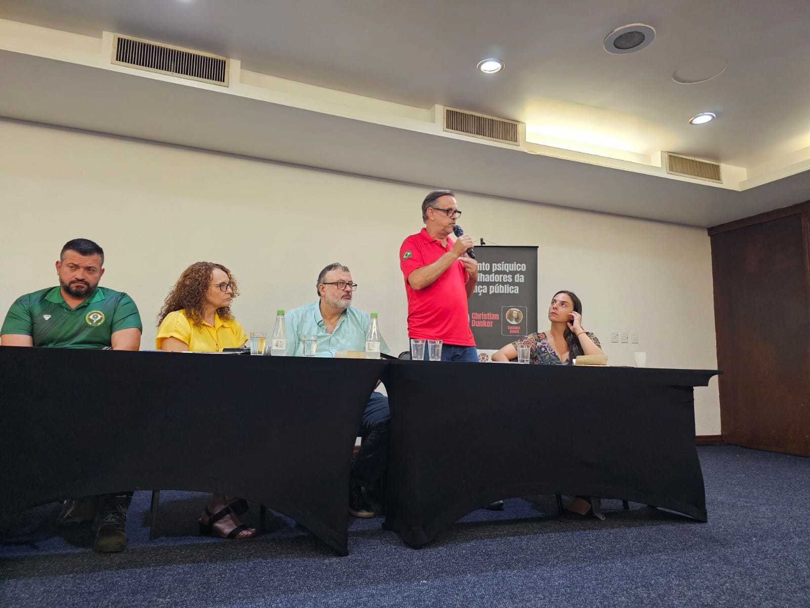 A Associação de Bombeiros do Estado do RS – ABERGS, a partir do Coordenador Geral, Tenente Coronel José Henrique Ostaszewski, participou no sábado (29) da palestra ‘Adoecimento Psíquico dos trabalhadores da segurança pública’, com a presença de Christian Dunker - psicanalista, professor do Instituto de Psicologia da Universidade de São Paulo; da deputada federal Fernanda Melchiona, e tendo como proponente, a deputada estadual Luciana Genro.