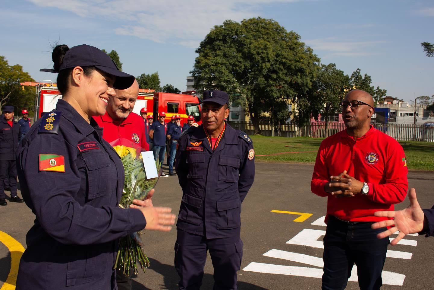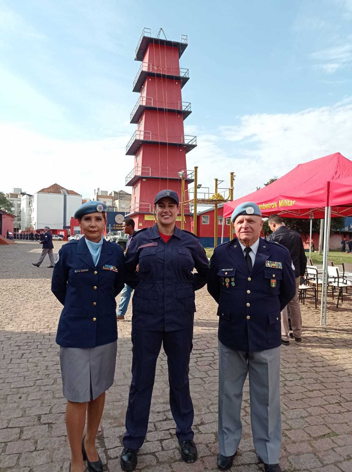 A Tenente Coronel Cristiane Nunes de Oliveira, é a primeira mulher a assumir o posto do Corpo de Bombeiros Militar do RS - CBMRS. E na manhã deste sábado (2), Dia Nacional do Bombeiro Militar, durante solenidade em homenagem aos veteranos e recém promovidos, a agora Tenente Coronel também foi homenageada pelos coordenadores da Associação de Bombeiros do Estado do RS – ABERGS, no qual a Tenente Coronel também é coordenadora de Secretariado.
